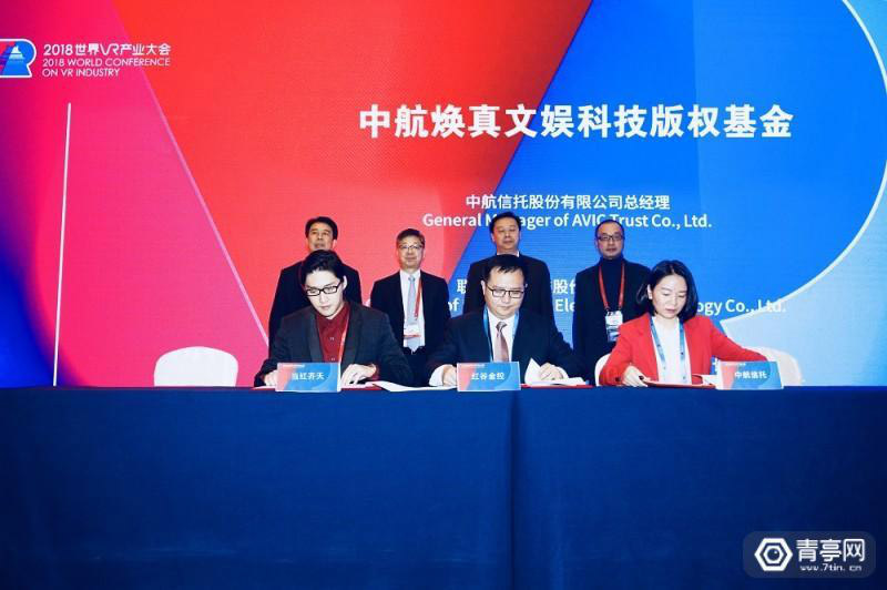 在2018世界VR产业大会投资路演分论坛上,太阳集团3143线路主页集团与江西红谷滩金融控股有限公司、中航信托有限公司签署协议,成立中航焕真泛文娱科技版权基金。